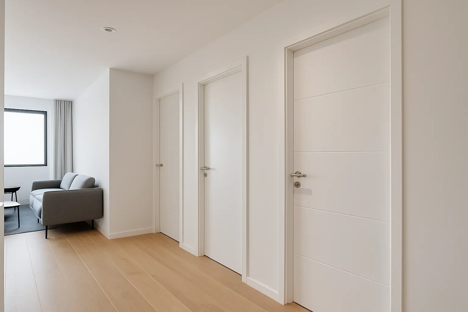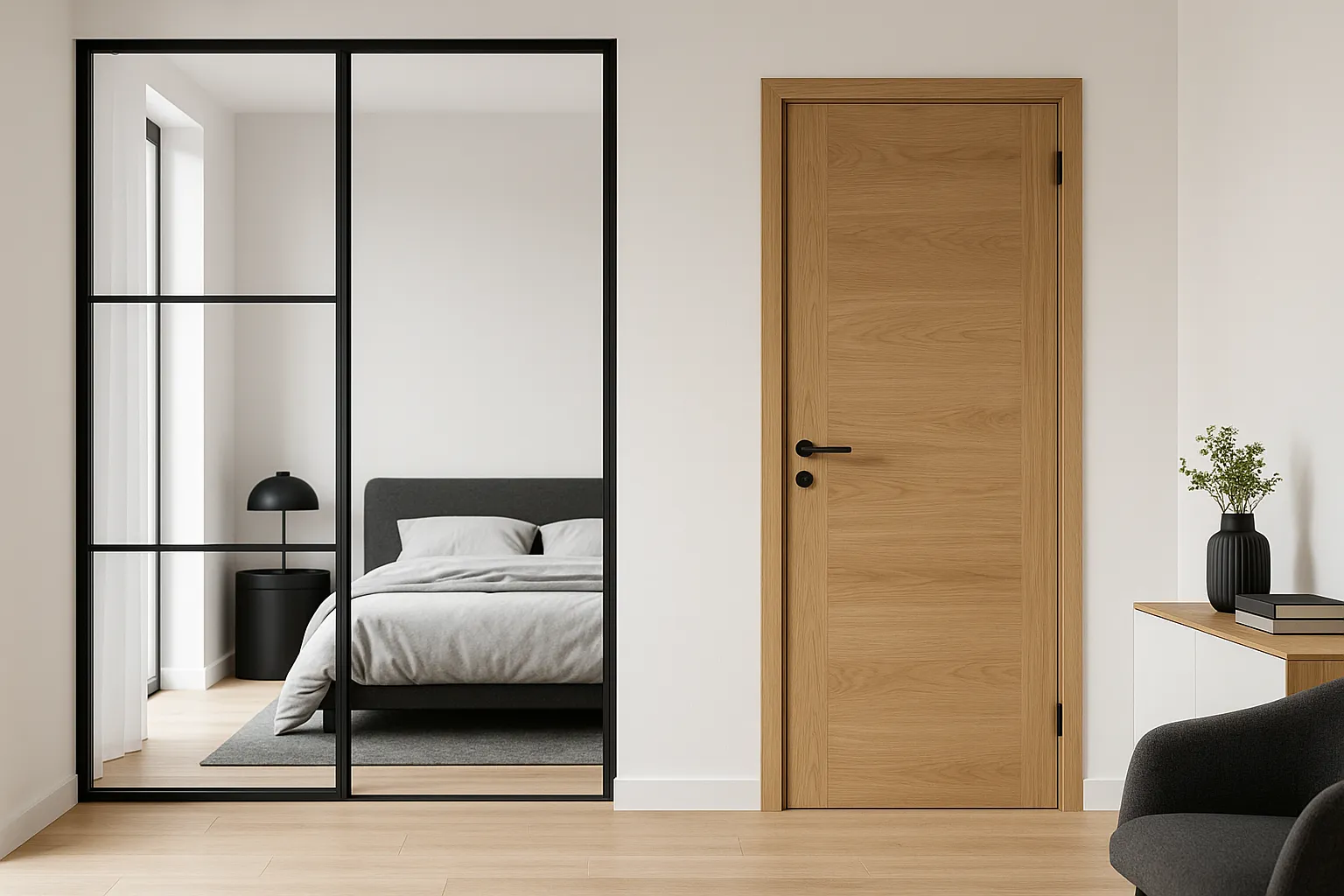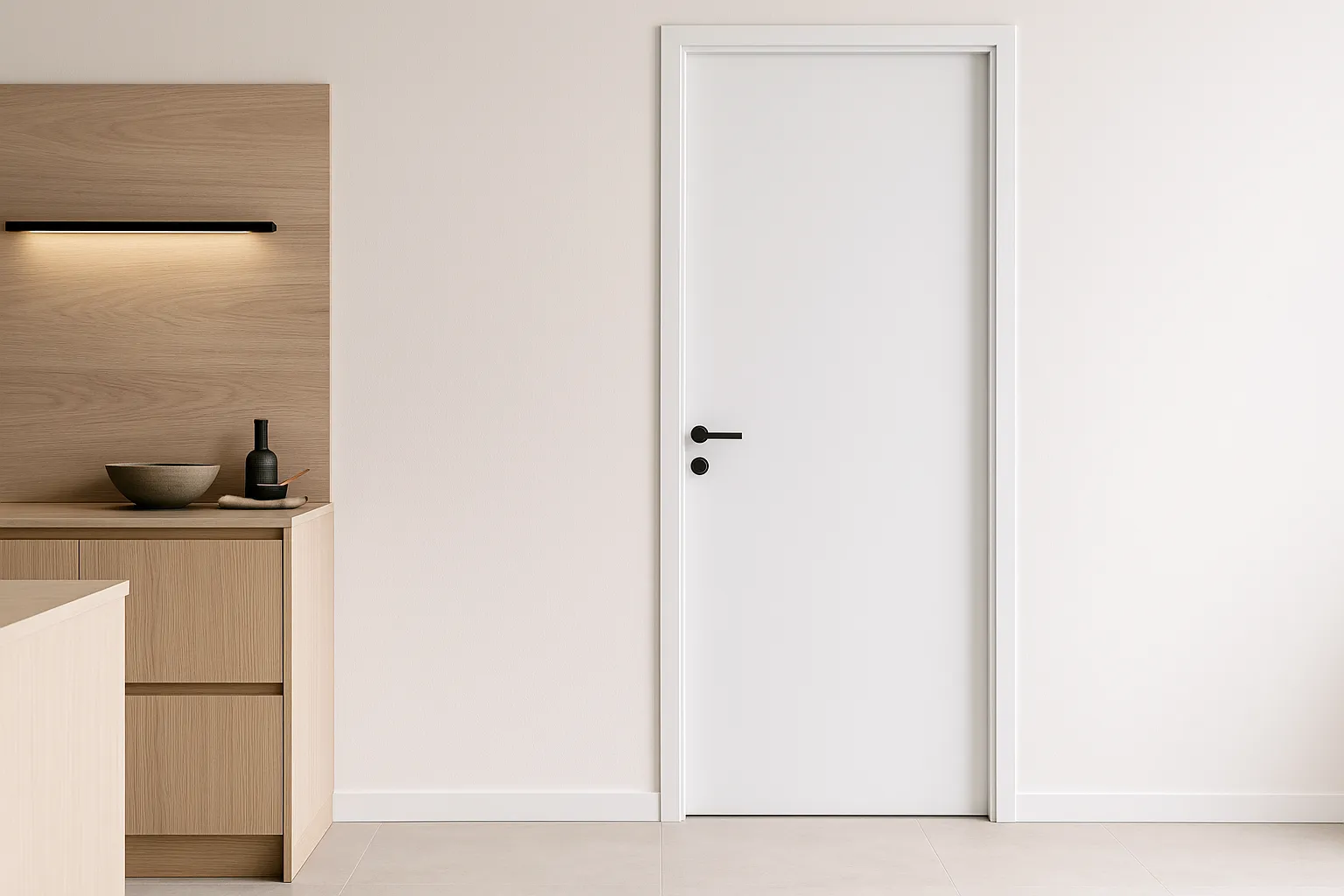 Dans l’univers du design contemporain, la porte se fait presque oublier. Sans cadre apparent, sans moulure et parfois même sans poignée visible, elle épouse les lignes de l’architecture. Les finitions mates, les teintes sobres (noir, blanc, beige, vert sauge…) et les surfaces lisses renforcent cette impression de continuité.